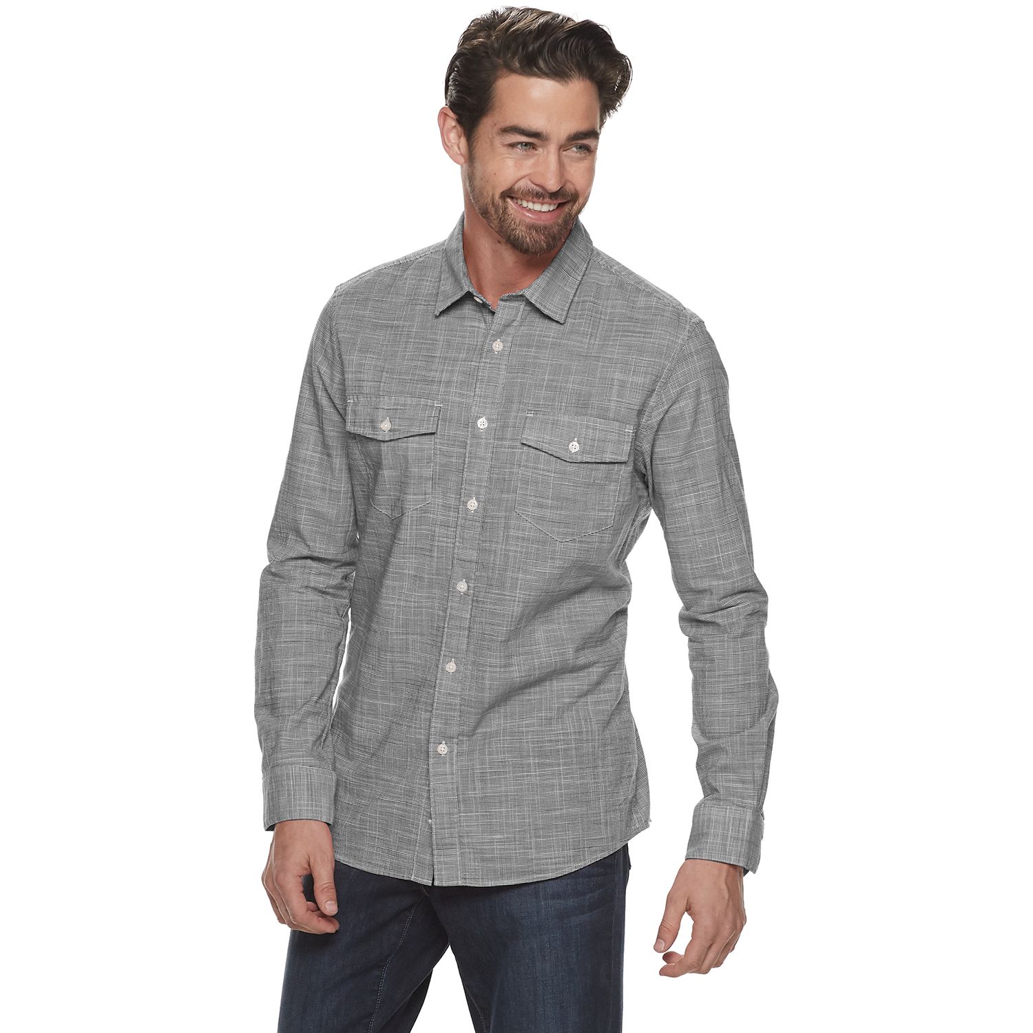 Slim-Fit Crosshatch Button-Down Shirt mens slim fit black button down shirt
