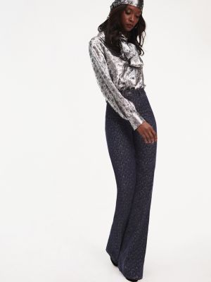 Zendaya Jacquard Bootcut Jeans | BLUE zendaya high waist bootcut jeans
