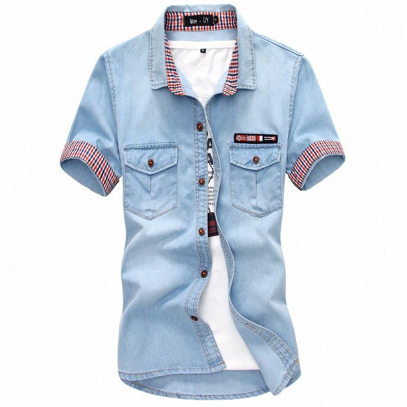 2020 Mens Light Blue Denim Shirts Men light jean shirt