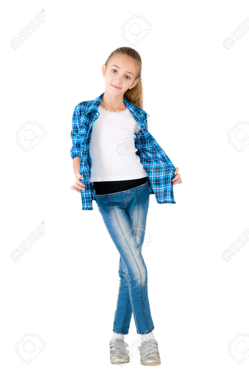 The Girl In Jeans And A Checkered Shirt girl jean shirt