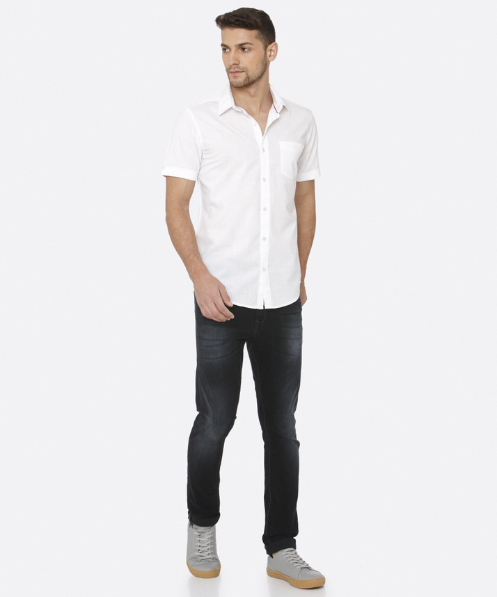Mufti Men Solid Casual White Shirt mufti white slim fit hooded shirt