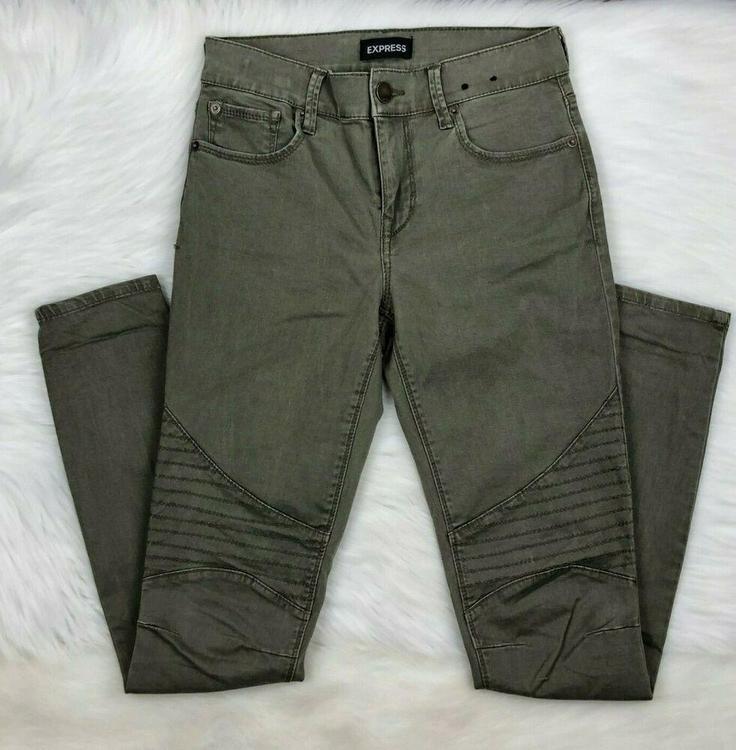 Express Slim Fit Mid Rise Denim women's olive green jeans