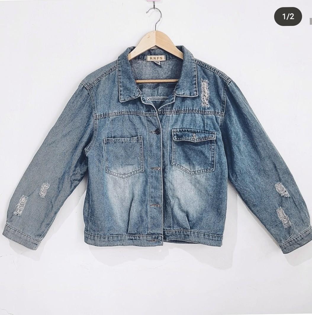 Distressed Denim Jacket, Women's cheap distressed denim jacket