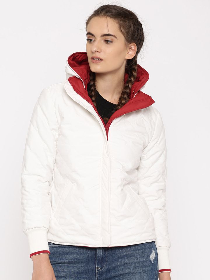White Solid Reversible Quilted Jacket womens white levi jacket