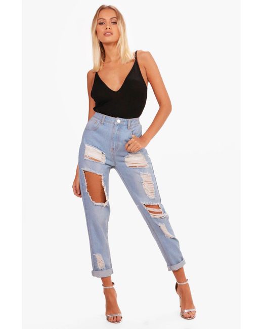 Sophie High Waisted Distressed Mom boohoo high waisted mom jeans
