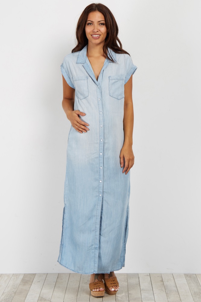 Light Blue Chambray Button Down denim button down maxi dress