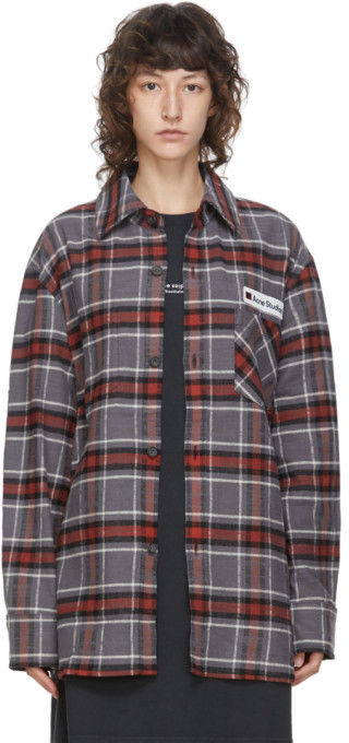 Acne Studios Grey and Red Flannel Logo acne studios estefani blouse