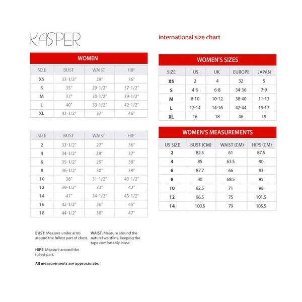 Women Apparel Size Conversion Chart