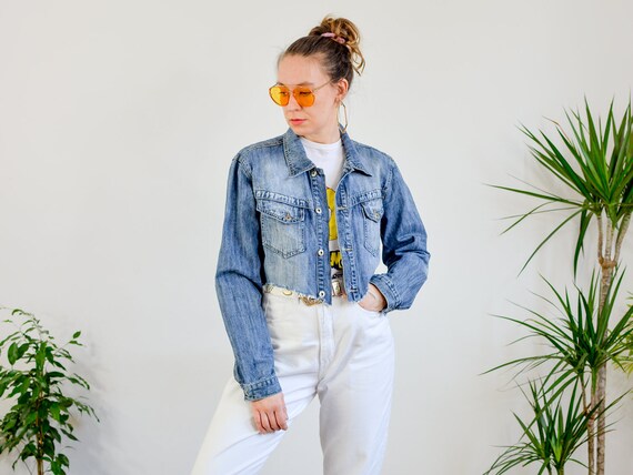 Cropped denim jacket reworked cut off cropped denim jacket