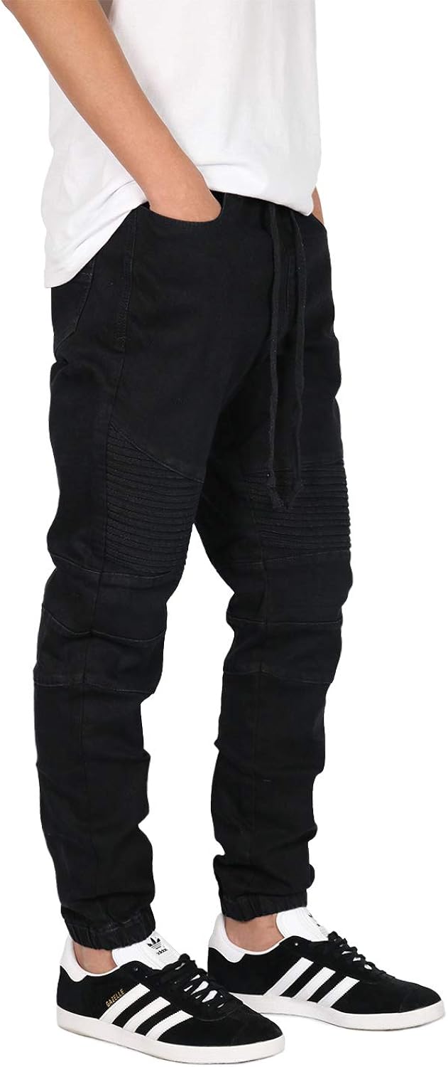 Men's Drop Crotch Denim Jogger Pants at lower crotch on pants