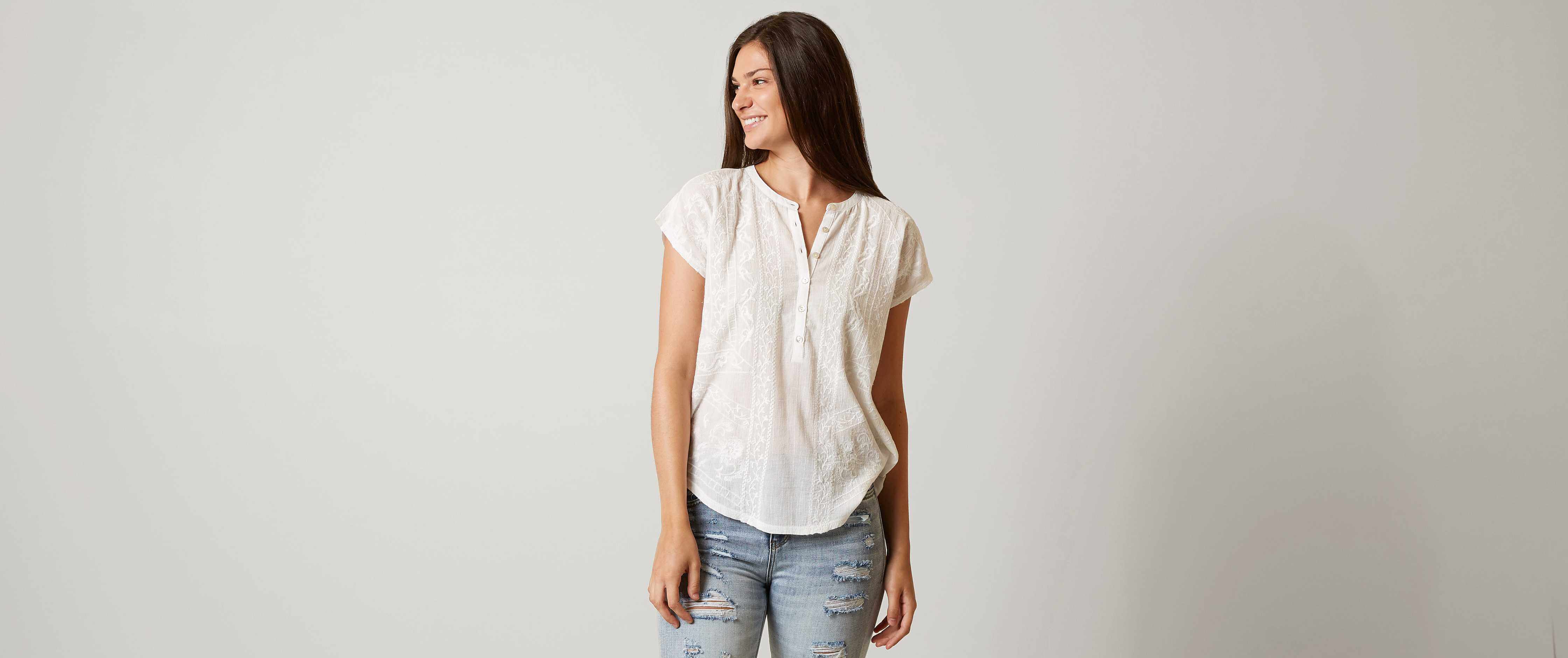 Lucky Brand Embroidered Henley Top lucky brand embroidered top
