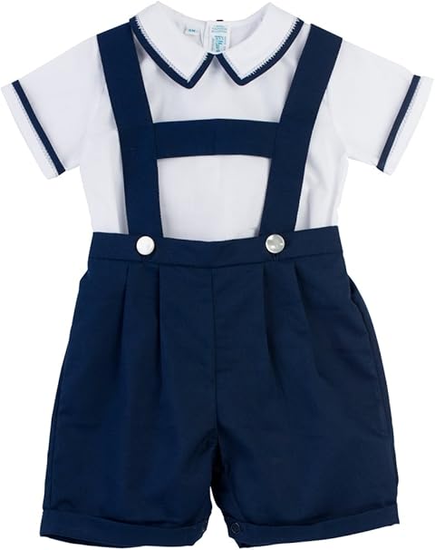 Feltman Brothers Navy Blue \u0026 White Boys baby boy navy shorts with suspenders