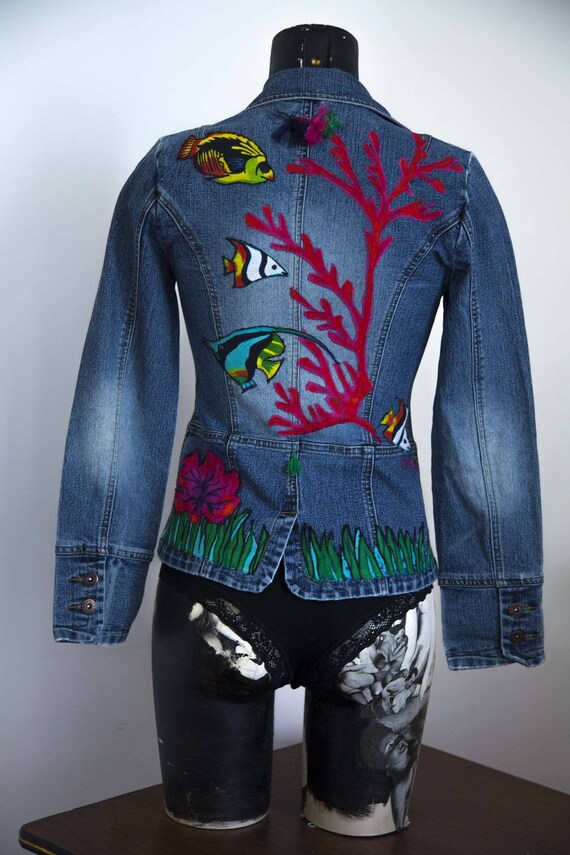 Jean jacket customized with coral fish cut jeans
