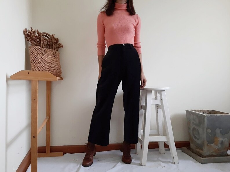 High Waisted Wool Pants women's high rise black trousers