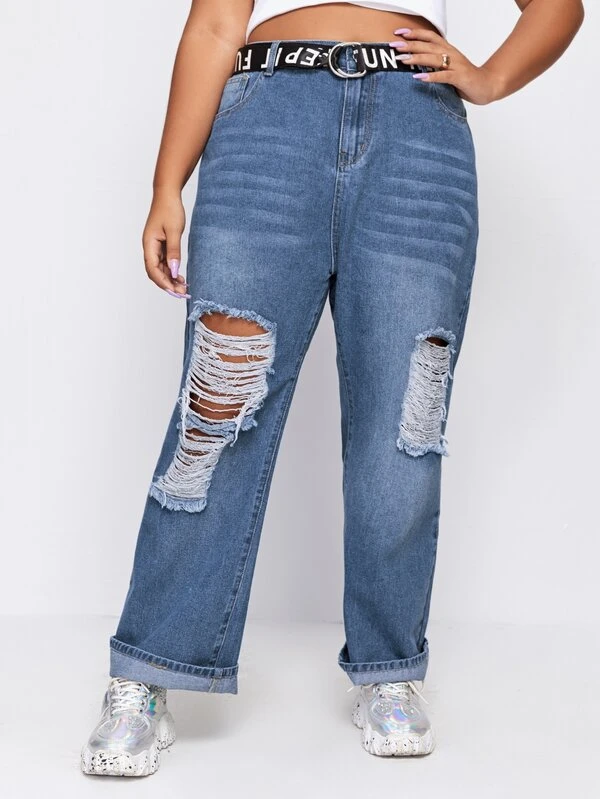 Plus Ripped Boyfriend Jeans Without romwe boyfriend jeans
