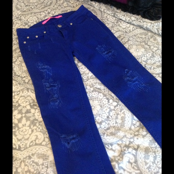 royal blue distressed jeans