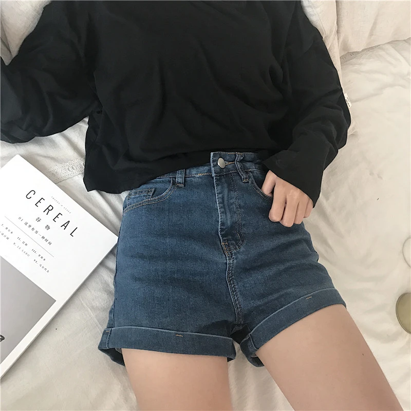 2020 Summer High Waist Denim Shorts roll waist shorts