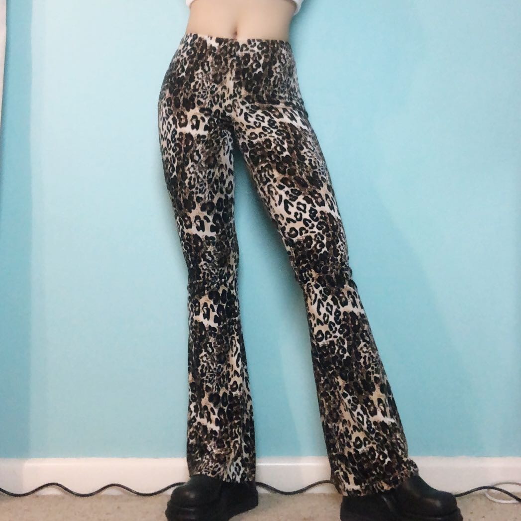 velvet leopard flare pants