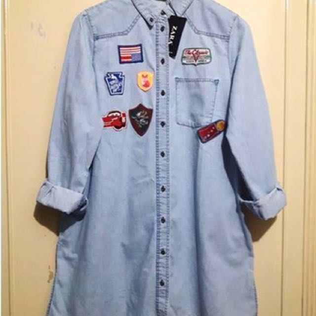 Zara Soft Denim Dress with Patches denim dress with patches