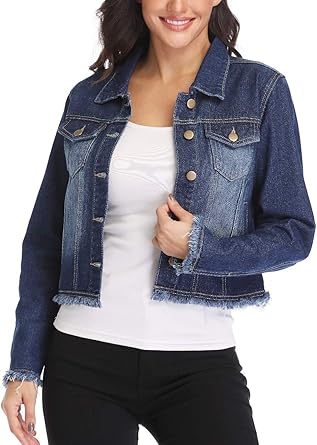 Wudodo Women's Crop Denim Jacket Button long denim jacket womens uk