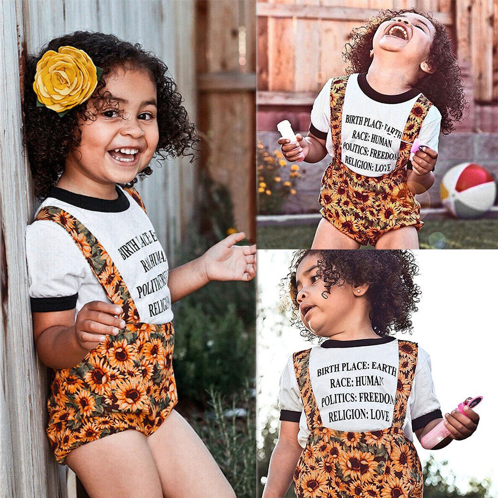 Infant Baby Girls Short Sleeve Letter sunflower overalls baby