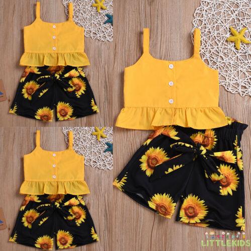 ♛♚♛Toddler Baby Kids Girls Clothes Crop sunflower overalls baby