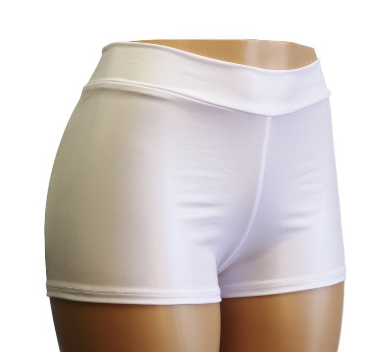 White METALLIC High Waist Booty Shorts white high waisted booty shorts