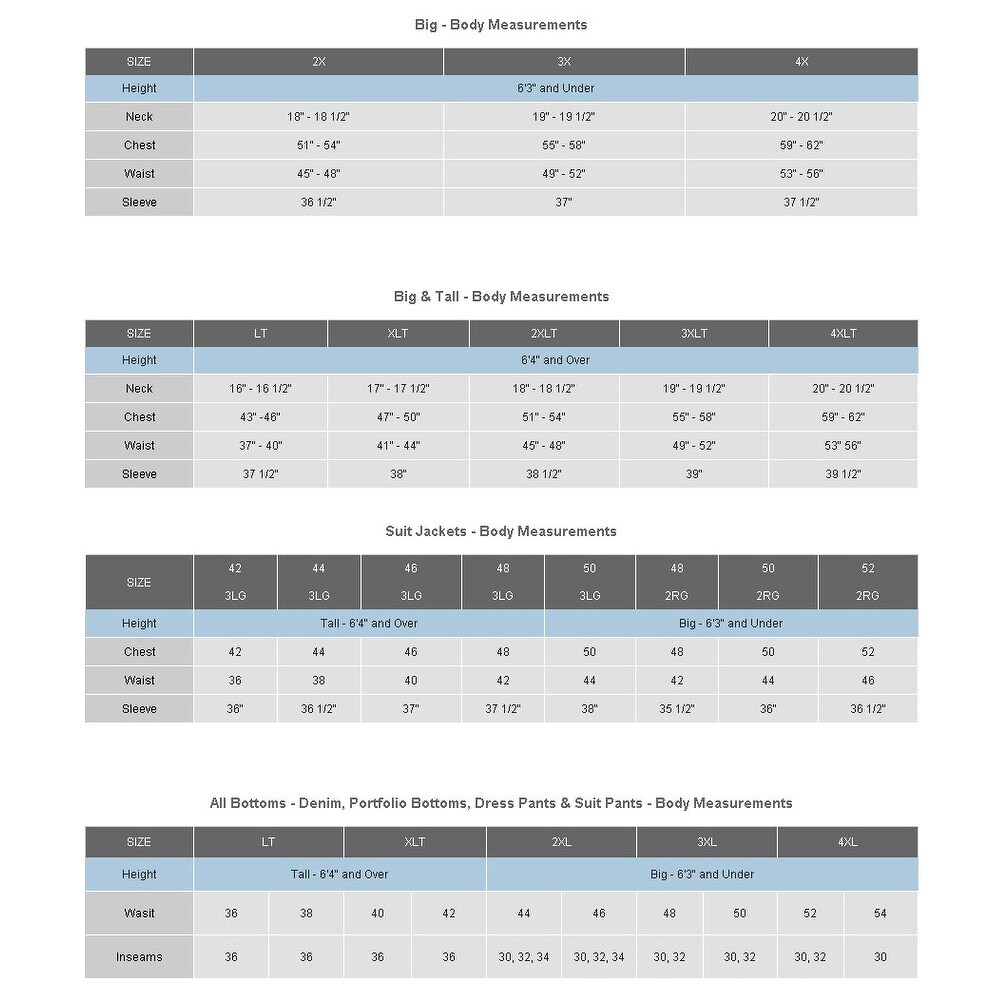 Size Chart | Men's Clothing