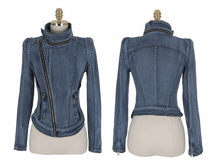Stylish Slim Fit Zipper Long Sleeved stylish denim jacket for women