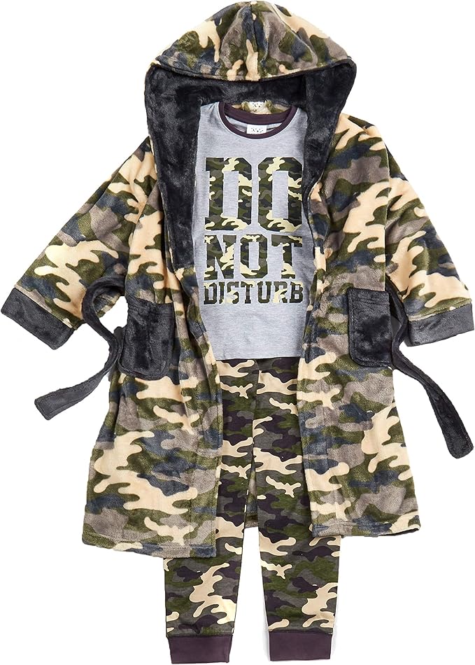 Metzuyan Boys Kids Camo Camouflage baby dressing gown and pyjama set