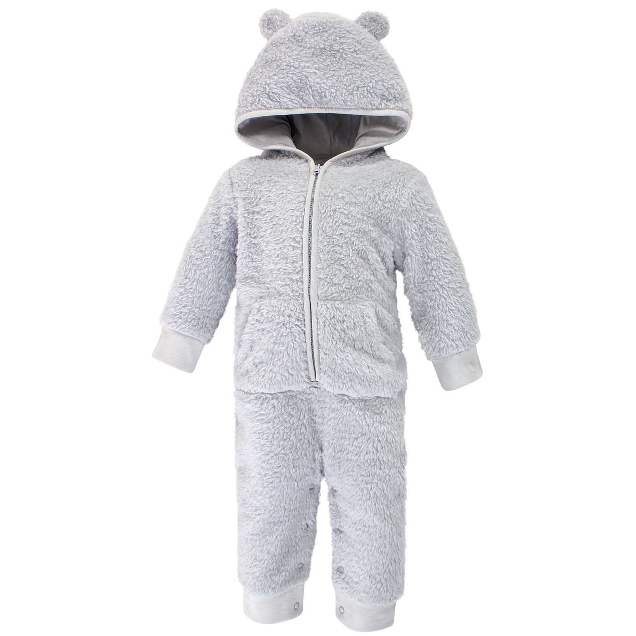 Hudson Baby Sherpa Jumpsuit, Gray Bear baby sherpa suit