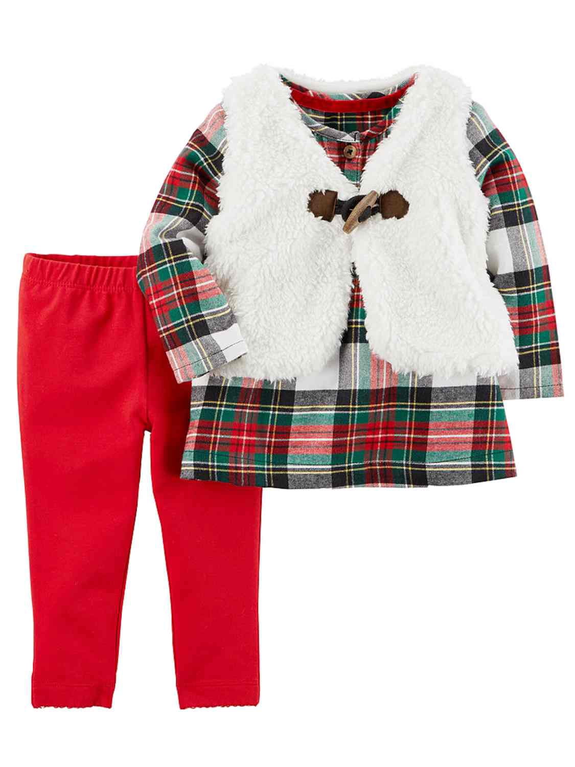 Red Plaid Baby Outfit Shirt Fuzzy Vest baby tartan leggings
