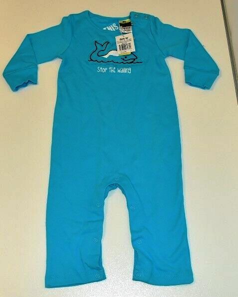 Blue Organic Cotton Long Sleeve / Leg big w baby rompers