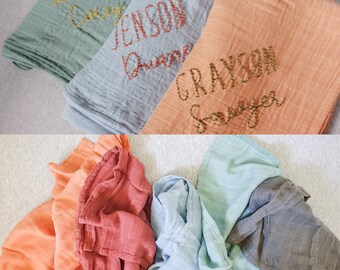 Embroidered muslin | Etsy embroidered swaddle blanket