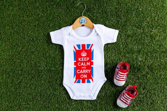 Keep Calm Carry On Cream Baby Onesie cream newborn onesie