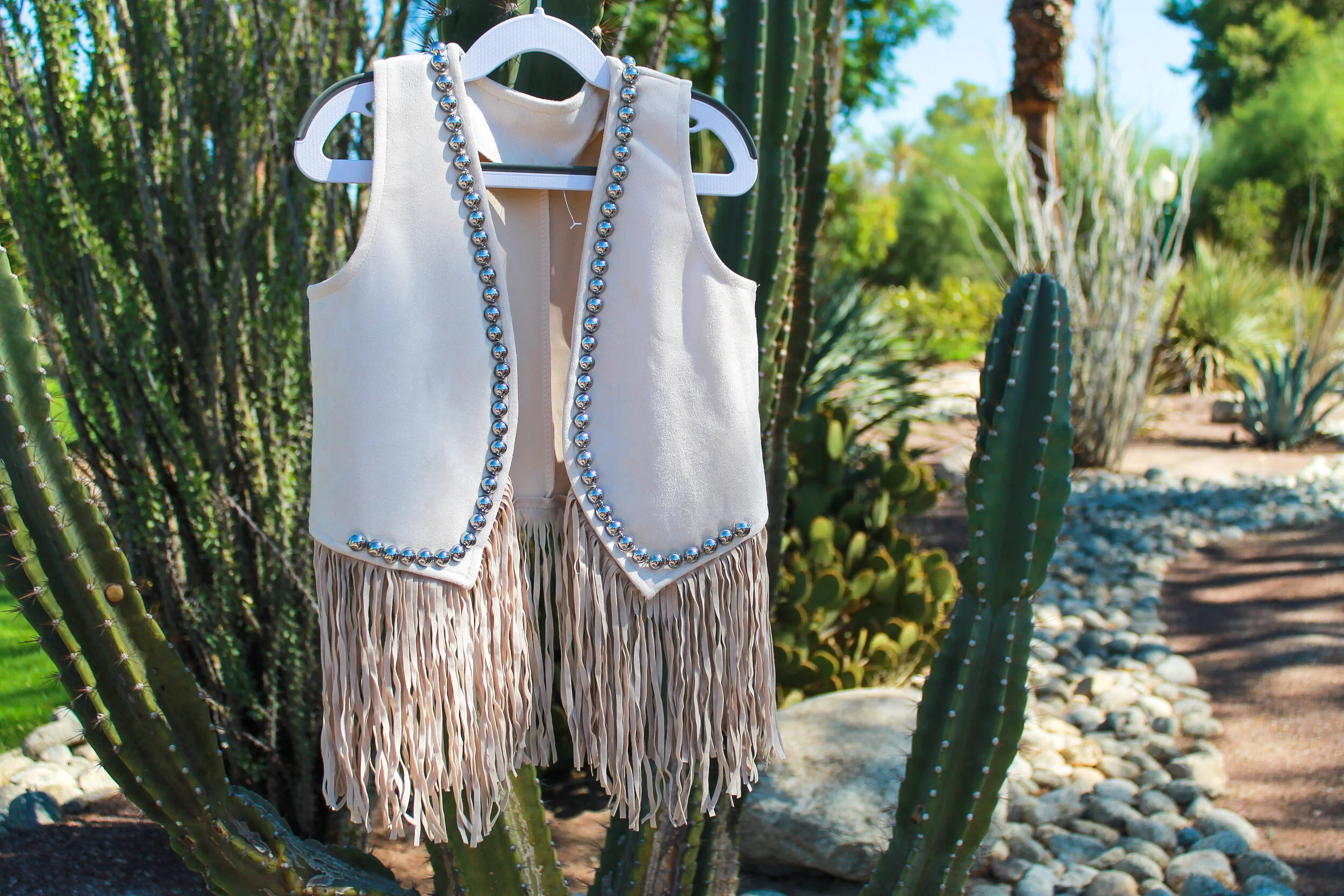 Studded Fringe Vest, Beige — Boho baby fringe vest
