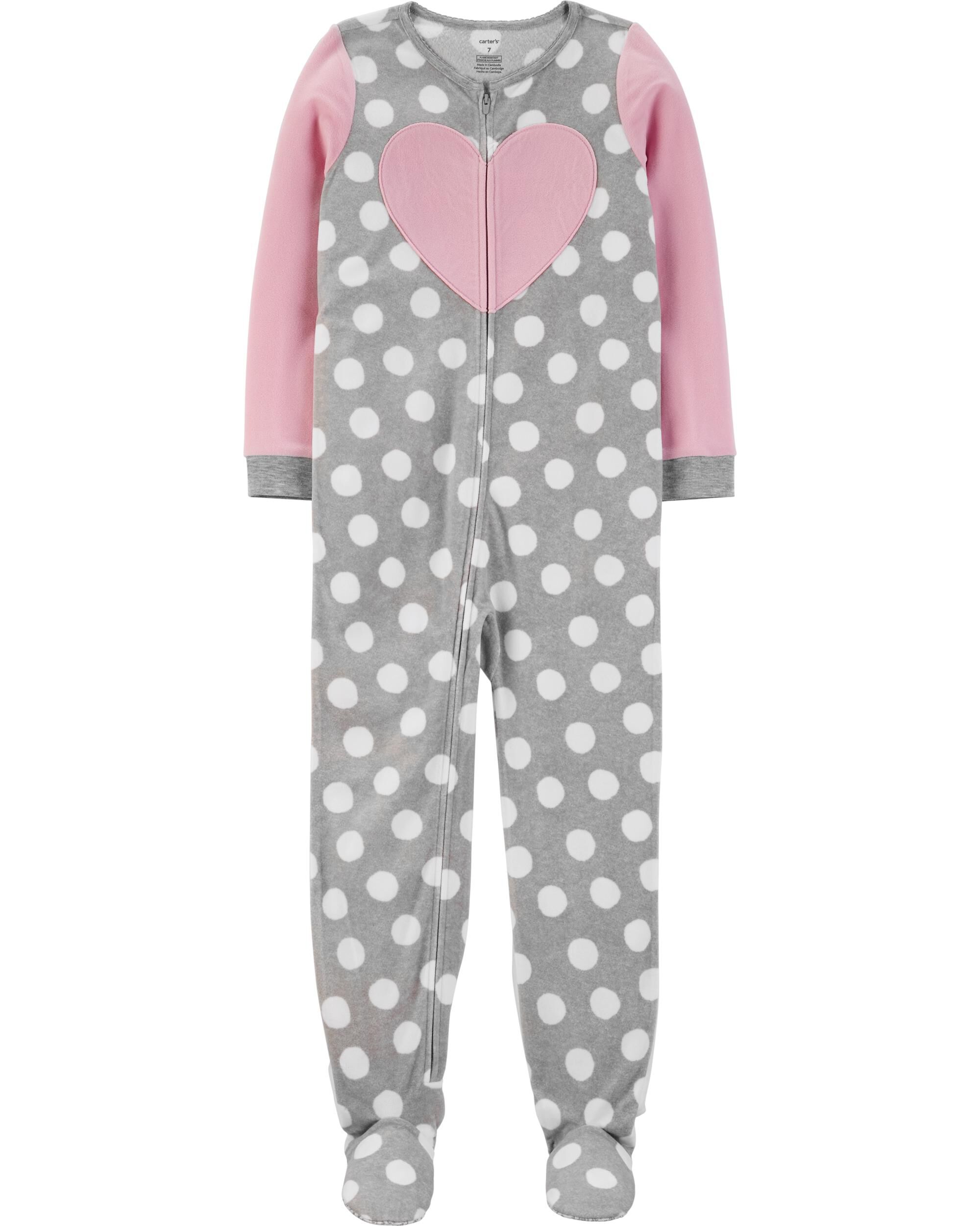 1-Piece Heart Fleece Footie PJs carters one piece fleece pajamas