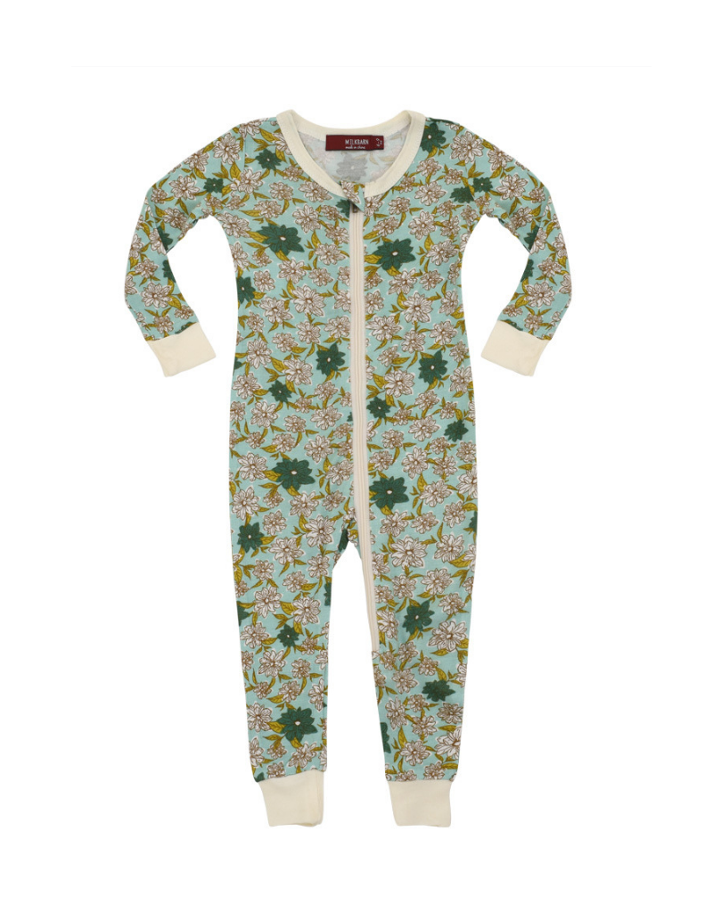 Blue Floral Zipper Pajamas - Sugarcup one piece zipper pajamas