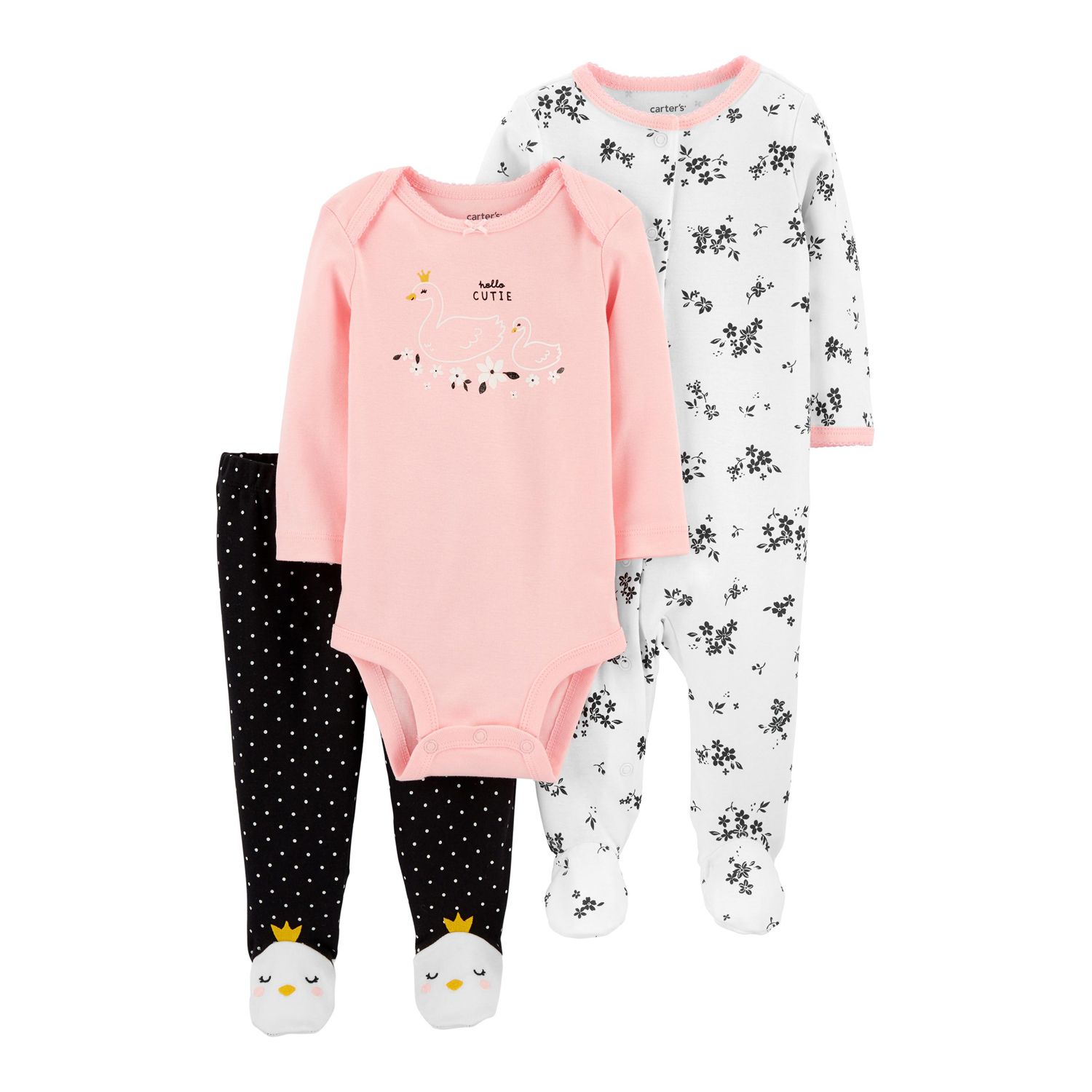 3-Piece Swan Bodysuit \u0026 Footed Pant Set footed bodysuit