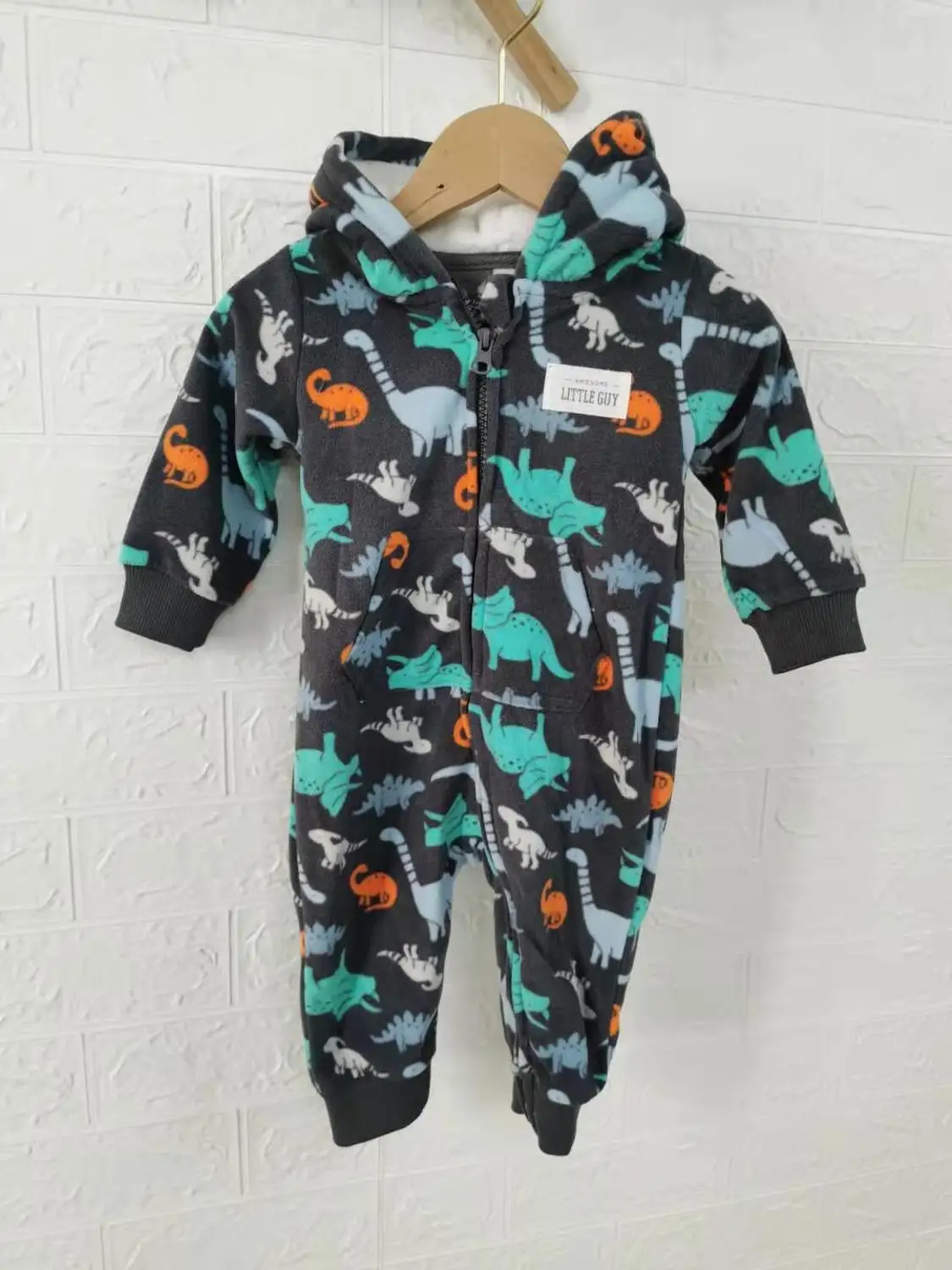 Newborn Baby Romper Hooded Warm Fleece infant dinosaur pajamas