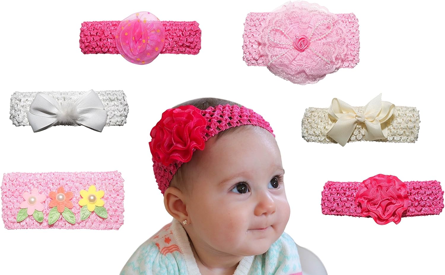 6 Pack Baby Headband – New Baby Girl headbands for 1 year olds