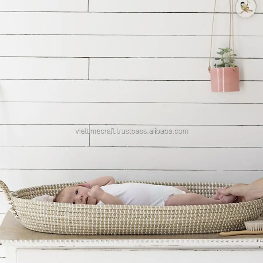 Natural seagrass baby changing/ oval seagrass baby basket