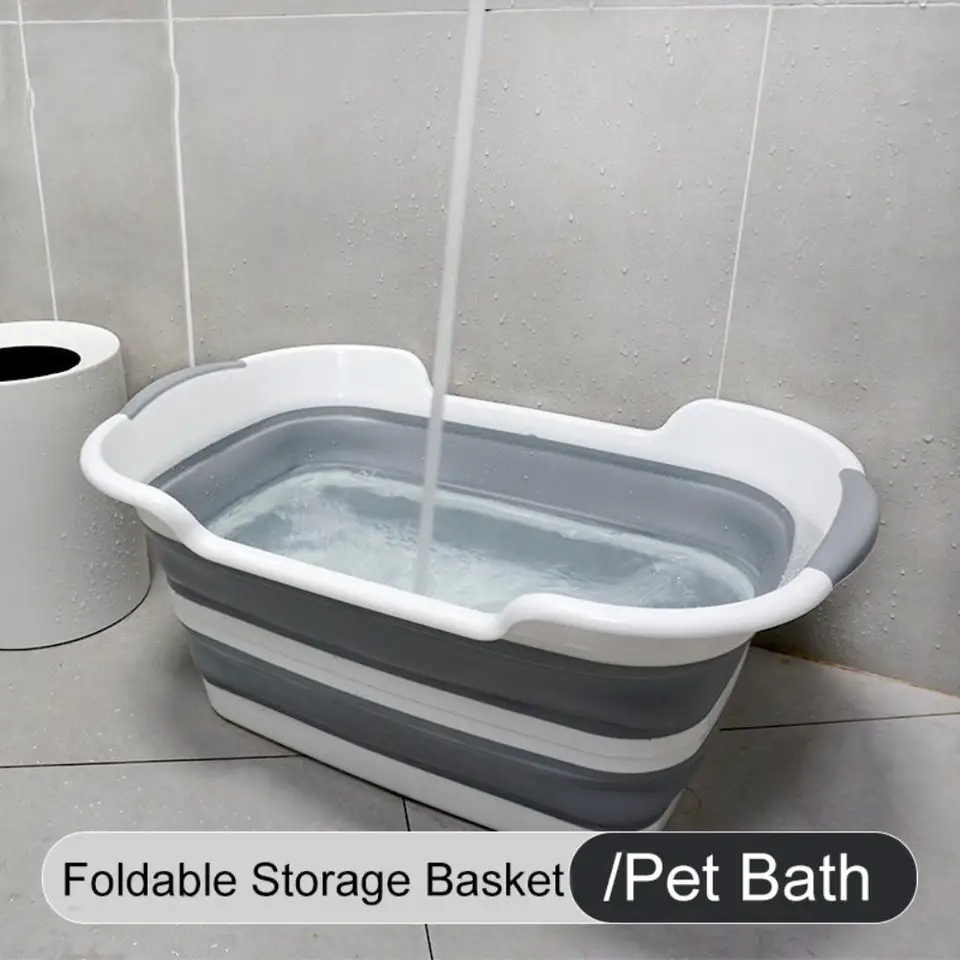 Folding Pet Dog Shower Bathtub Home baby in laundry basket in tub