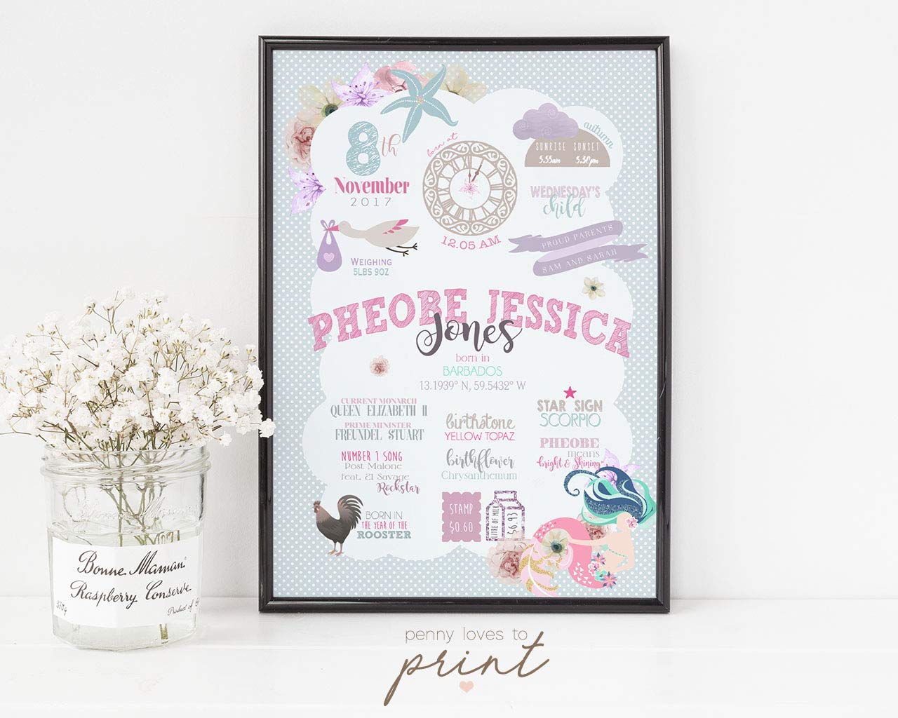 personalised new baby print