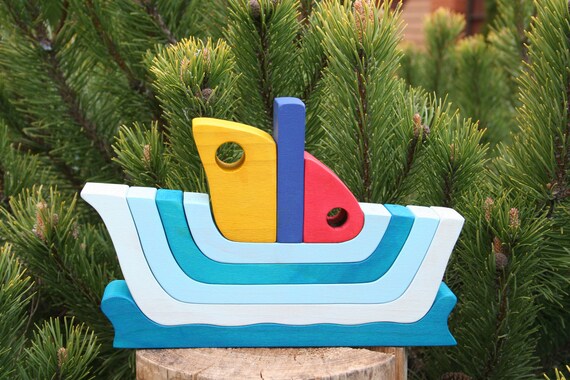 Waldorf rainbow stacker montessori baby baby toy boat