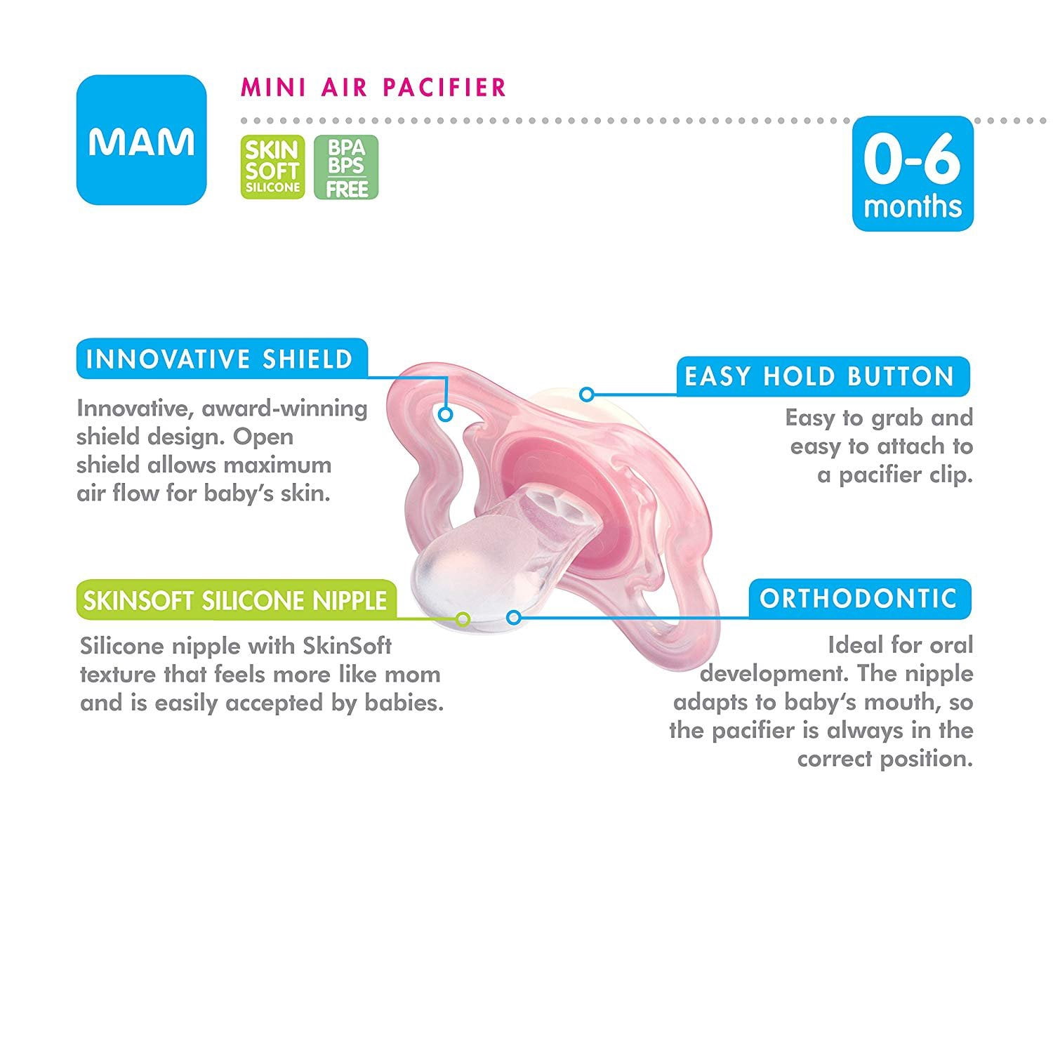 MAM Mini Air Silicone Pacifier Girl 0-6 mam mini air pacifier