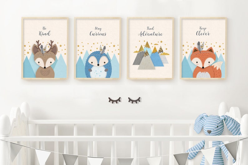 SALE nursery print set of 4 Woodland nursery print set