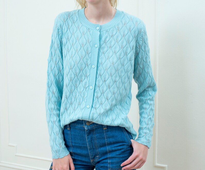80s blue knit cardigan large pastel long baby blue cardigan