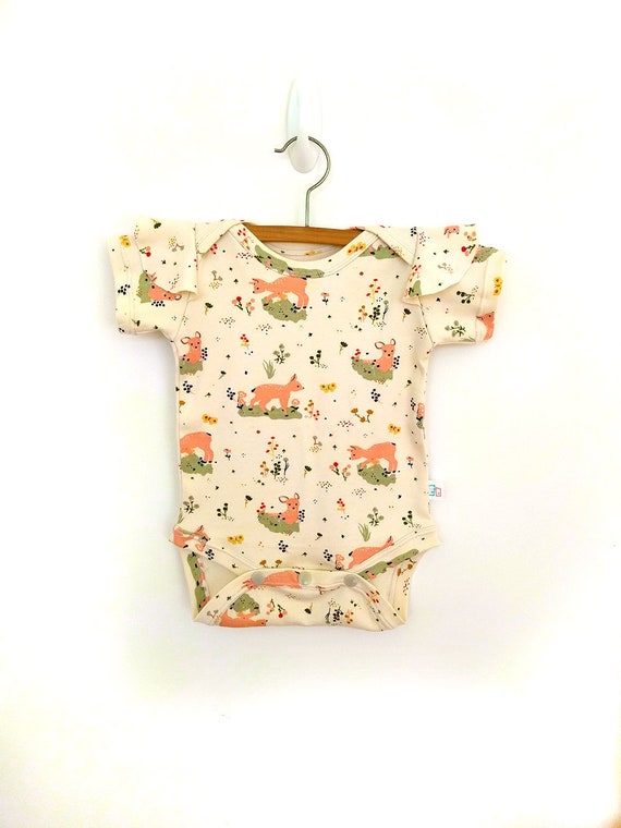 Organic Baby Romper / Frill Sleeve baby frill sleeve bodysuit