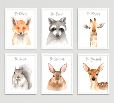 Forest Animal Wall Art Prints Set Baby animal prints for children's room